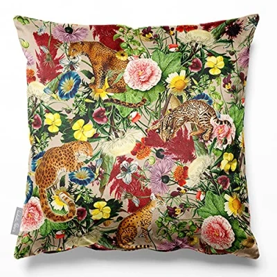 FLORA AND FAUNA COLLECTION: Add designer flair to your home décor with Izabela Peters scatter cushions. The decorative pillows make the ideal couch cushions, cushions for sofa & cushions for bed. ECO-FRIENDLY: Made from our exclusive 100% recycled fabric. The velvet is beautifully soft to touch with the attributes you would expect from a premium fabric but at a much lower environmental cost. AWARD-WINNING DESIGN: The sofa cushions with covers included are designed, printed & handmade in our UK studios. They come in a range of colours from grey cushions, pink cushions to teal cushions. PREMIUM QUALITY: They have a hidden zip and the same pattern is on both sides - making them fully reversible. The cover is machine washable at 30 degrees. Enjoy large cushions with covers included. ECO-FRIENDLY INNERS: The luxury sofa pillows are filled with breathable recycled fibres. They are incredibly soft, shape retaining & offer plump support. Delivered to you in air-compressed packaging