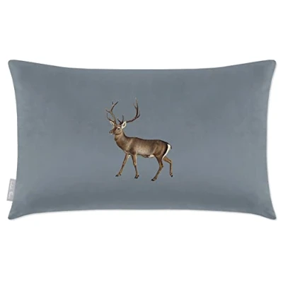 Izabela Peters Cushions With Covers Included, Filled Cushion, Eco Friendly Velvet Cushions, 60 x 40 cm, Stag French Grey, Chair Sofa Seat