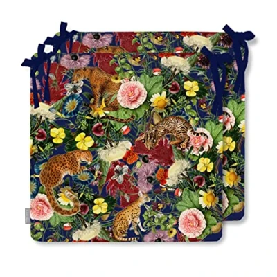 FLORA AND FAUNA COLLECTION: enjoy your kitchen, garden, conservatory, office and dining area with on-trend design. The luxury seat pads give your chairs a stylish and comfortable finishing touch. SUPERIOR QUALITY CUSHION: for your outdoor and indoor furniture, the seat cushions are made from high density foam. Giving you maximum comfort, support and also increasing the cushioning performance of the waterproof pads. The design is mirror matched at the seams to enhance the design. PREMIUM FABRIC: made out of our exclusive waterproof soft to touch, hardwearing, breathable fabric, which is treated with an antifungal agent. The same design is on both sides making the dining and outdoor chair cushions fully reversible. The cover is easily wiped clean and also machine-washable. SECURE: the chair cushions have ties on them to allow them to be easily and securely attached to your garden, kitchen, office chair and dining chairs. They are perfect for patio sets and make the perfect foam cushion for indoor and outdoor living. AWARD-WINNING UK DESIGN AND MANUFACTURE: the seat pads have an invisible zip, at the back, creating sleek lines and giving addded performance. Matching Izabela Peters outdoor cushions, waterproof cushions, pouffess and garden cushions are available on amazon. All Izabela Peters products are designed, printed and handmade in our UK Studios and quality checked before despatch.