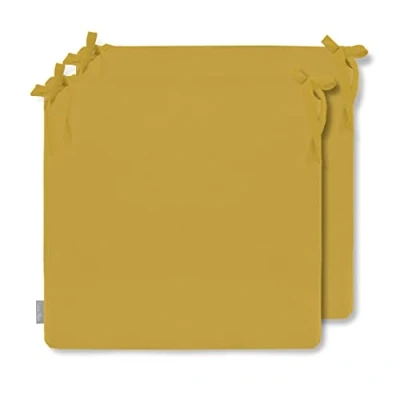 Izabela Peters Luxury Outdoor Waterproof Chair Seat Cushions Set Of 2 High Density Foam Pads for Garden Furniture, Indoors & Outdoors Dining Chairs Mustard