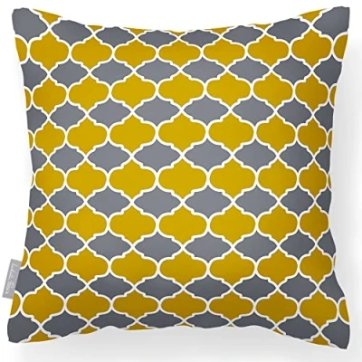 Izabela Peters Outdoor Cushions Waterproof, 43 cm, Filled Cushion, Badi Mustard & Grey, Garden Furniture Cushions, Seat Chair