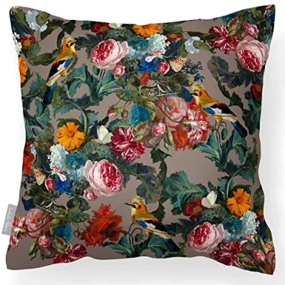 Izabela Peters Outdoor Cushions Waterproof, 43 cm, Filled Cushion, Birds in Paradise Dovedale Stone, Garden Furniture Cushions, Seat Chair