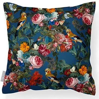 Izabela Peters Outdoor Cushions Waterproof, 43 cm, Filled Cushion, Birds in Paradise Estate Blue, Garden Furniture Cushions, Seat Chair