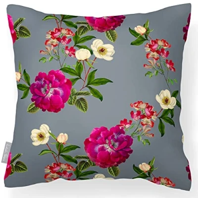 Izabela Peters Outdoor Cushions Waterproof, 43 cm, Filled Cushion, Floral Glade Grey, Garden Furniture Cushions, Seat Chair