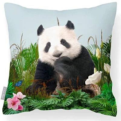 Izabela Peters Outdoor Cushions Waterproof, 43 cm, Filled Cushion, Forrest Panda Duck Egg Blue, Garden Furniture Cushions, Seat Chair