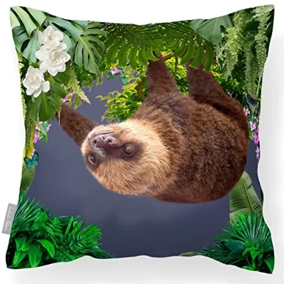 Izabela Peters Outdoor Cushions Waterproof, 43 cm, Filled Cushion, Smiling Sloth Graphite, Garden Furniture Cushions, Seat Chair
