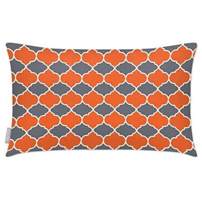 Izabela Peters Outdoor Cushions Waterproof, 50 x 30 cm, Filled Cushion, Badi Morc Orange & Grey, Garden Furniture Cushions, Seat Chair