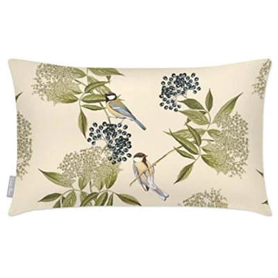 Izabela Peters Outdoor Cushions Waterproof, 55 x 35 cm, Filled Cushion, Bird on Elderflower Ivory Cream, Garden Furniture Cushions, Seat Chair