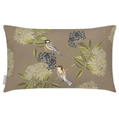 Izabela Peters Outdoor Cushions Waterproof, 55 x 35 cm, Filled Cushion, Bird on Elderflower Taupe, Garden Furniture Cushions, Seat Chair