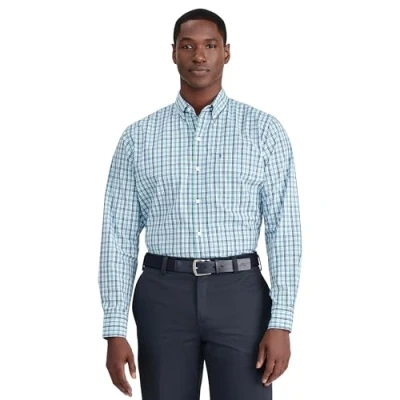 IZOD Men's Performance Comfort Long Sleeve Plaid Button Shirt, Deep Sea Bw002, S