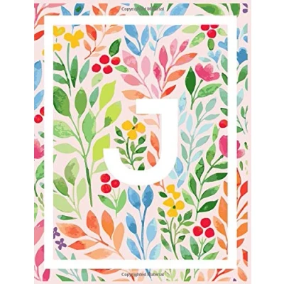 J: J Monogram Journal Personalized With Initial Pink Floral Notebook 120 Pages 8.5 x 11“ F For Women And Girls