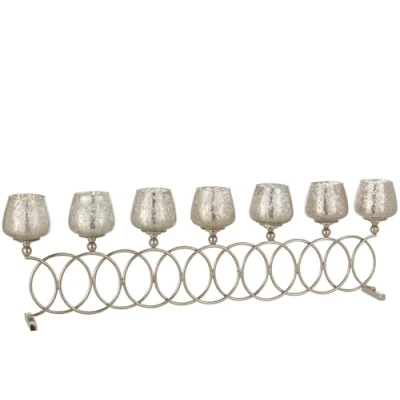 Candle Holder with 8 Rings Crackle Glass Nickel