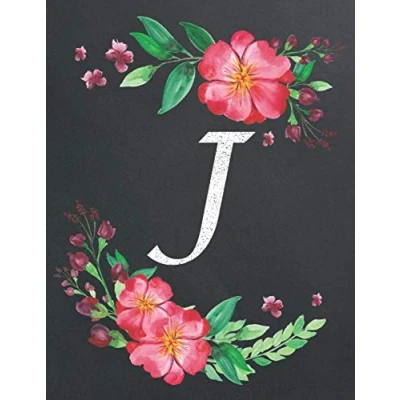 J: Monogram Initial J Notebook for Women and Girls, Floral Design, Lined Pages (Composition Book, Personalized Journal) (8.5 x 11 Large) (Floral Notebook)