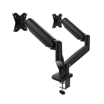 - This J5create dual-arm desk mount holds two 17-32" monitors, each weighing up to 8 kg - Its gas spring arms make it easy to adjust the height, tilt, and swivel to find the perfect angle - Keep your desk clutter-free at all time - it has a built-in cable management system - A grommet mount, mounting clamp, and installation kit are included in the box, so you can get started right away