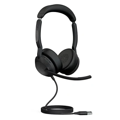Greater comfort and flexibility: Jabra Air Comfort technology, a padded pressure-relieving headband with rotating ear cups for complete comfort. Connect to two devices at once with dual-connectivity Professional quality calls: Powerful active noise cancellation technology effectively silences background noise, whilst 2 premium noise-compressing microphones improve voice transmission Work and play: Be immersed in your media with 28mm customised speakers, optimised with the latest codec, whilst the adjustable boom arm and mute function let you control calls from your headphones Seamless collaboration: Our Evolve2 50 headset is certified for Microsoft Teams with an integrated Teams button to join meetings quicker and easier. The 360° Busylight turns on when in a meeting In the box: 1x Jabra Evolve2 50 Wired Noise-Cancelling Stereo Bluetooth Headset with USB-A Cable, Carry pouch, and User Manual, Headset weight: 148.9 g / 5.25 oz, Colour: Black Product comes with a 2-year warranty - registration required