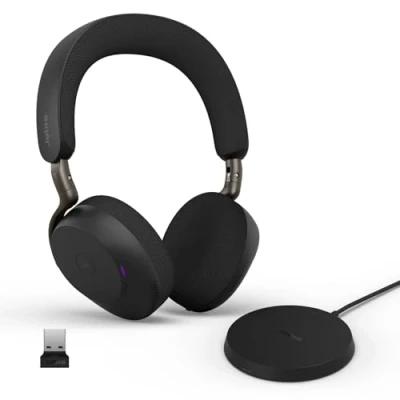 Jabra Evolve3 75 On Ear Wireless Bluetooth Headset with Mic and Charging Stand for Work, USB A, AI Voice Call Technology, Advanced ANC, 22 Hour Battery, Microsoft Teams Certified, Black