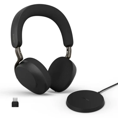 Jabra Evolve3 75 On Ear Wireless Bluetooth Headset with Mic and Charging Stand for Work, USB C, AI Voice Call Technology, Advanced ANC, 22 Hour Battery, Works Online Meeting Apps, Black