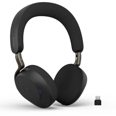 Jabra Evolve3 75 On Ear Wireless Bluetooth Headset with Microphone for Work, USB C, AI Voice Call Technology, Advanced Active Noise Cancellation, 22 Hour Battery, Microsoft Teams Certified, Black