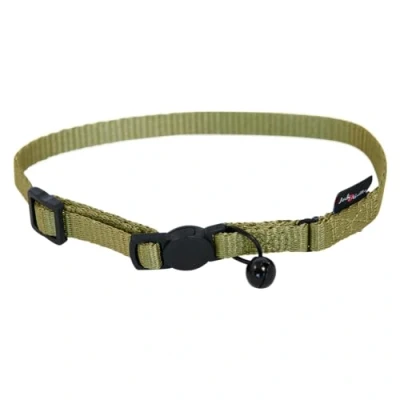 JACK and VANILLA, Adjustable Cat Collar in Green Nylon, Safety System, Lightweight Comfortable, Size 10 mm, Length 24 35 cm, Ideal for Active Cats, Comfort Model