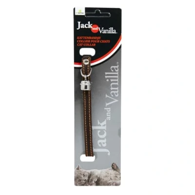 JACK and VANILLA, Adjustable Fat Leather Cat Collar with Safety Buckle Tag Ring, Brown, Size 10 mm x 30 cm, Model