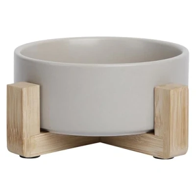 JACK and VANILLA, Bon Appetit Elegant Ceramic Bowl with Bamboo Stand, 1800 ml Capacity, Modern Sophisticated Design, Ideal for Dogs Cats, Grey