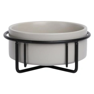 JACK and VANILLA, Bon Appetit Elegant Ceramic Bowl with Non Slip Metal Stand for Dogs Cats, Capacity 850 ml, Easy to Clean, Grey, Modern Sophisticated Design, Model