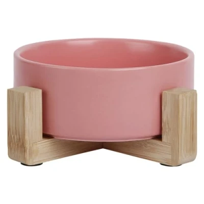 JACK and VANILLA, Bon Appetit Pink Ceramic Bowl with Bamboo Stand, Stylish Durable Design, Ideal for Small Medium Animals, Capacity 400 ml,