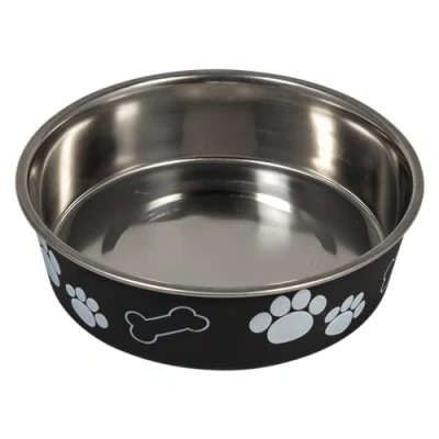 Quality material: the good APPETIT model bowl is made of stainless steel, ensuring exceptional durability and corrosion resistance, making it an ideal choice for your pet's daily meals without the risk of long-term deformation or rust STYLISH DESIGN - With its sleek black finish and 17cm diameter, this bowl fits perfectly into any home whilst adding a modern touch to your pet's space, making meals not only practical but also aesthetically pleasing OPTIMAL CAPACITY - With a capacity of 750ml, this bowl is perfectly suitable for medium dogs and cats, allowing adequate amount of food or water to be served, while avoiding overflows and making cleaning up after meals a breeze Ease of care: Stainless steel allows for easy and quick cleaning, whether by hand or in the dishwasher, which is essential for maintaining good food hygiene for your pet, reducing the risk of bacteria and unpleasant odors NON-SLIP - The base of the bowl is designed to be non-slip, which prevents the bowl from sliding on the floor while your pet eats, providing a more enjoyable dining experience and preventing accidental food or water spills