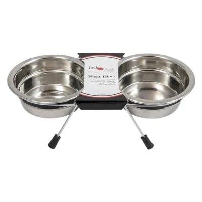JACK and VANILLA, Bon Appetit Stainless Steel Silent Pet Bowl Set, Stylish Design, Easy to Clean, Capacity 2 x 380 ml, Ideal for Small Medium Animals, Silver, Model