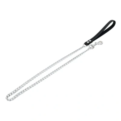 JACK AND VANILLA, Chain Lead for Dogs, Fat Leather, Black, Size 12 mm x 110 cm