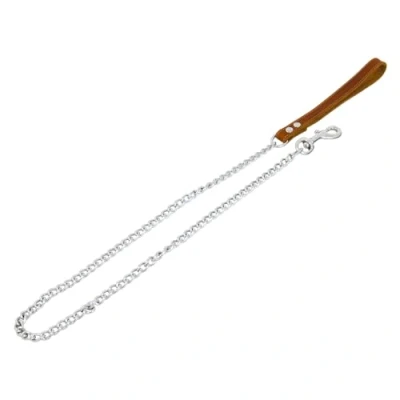 JACK AND VANILLA, Chain Lead for Dogs, Fat Leather, Cognac, Size 12 mm x 110 cm