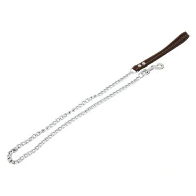 JACK AND VANILLA, Chain Lead for Dogs, Greasy Leather, Brown, Size 16 mm x 110 cm