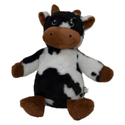 Interactive comforter: This 18cm cow comforter is designed to stimulate interaction between your pet and his toy. Thanks to its built-in squeaker, it emits a fun sound that attracts your dog's or cat's attention, making every play moment even more engaging and entertaining. QUALITY MATERIALS - Made from soft and durable materials, this comforter is perfect for cuddling while still being sturdy enough to withstand the most energetic games. Its pleasant texture ensures optimal comfort for your four-legged friend. Attractive design: With its brown pattern and cow appearance, this comforter is not only a toy, but also a decorative accessory for your home. Its playful and colorful design will appeal to both pets and their owners, adding a touch of fun to your environment. Easy care: This cuddly toy is machine washable, which makes it easy to maintain and ensures optimal hygiene for your pet. You can clean it easily after play sessions, ensuring your pet stays healthy and happy. IDEAL FOR ALL AGES: Whether your pet is a curious puppy or an adult cat, this cuddly toy is suitable for all ages. It is perfect for encouraging active play and skill development, while providing comfort during moments of rest.