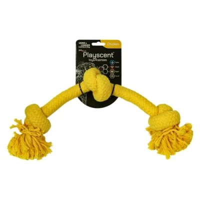 STRONG ROPE: The PLAYSCENT Chicken Rope Model is made from high quality materials that ensure exceptional durability, allowing your pet to play without the risk of tearing or rapid wear, ideal for shooting and pulling games with your dog ATTRACTIVE SCENT Infused with an irresistible chicken aroma, this rope stimulates your dog's interest, making every play session more engaging and fun, promoting positive interaction between you and your four-legged friend IDEAL SIZE - Measuring 48cm long, this rope is perfectly sized for dogs of all sizes, providing a good balance between maneuverability and comfort, making it suitable for indoor and outdoor play Easy to maintain: The Playscent Chicken Rope model is designed to be easily washable, allowing to maintain good hygiene while extending the life of the product, a major asset for owners who care about the cleanliness of their game accessories Physical & Mental Stimulation: By playing with this rope, your dog gets a great opportunity for physical exercise while developing his mental abilities, thus contributing to his overall well-being and health, a wise choice for active pet owners