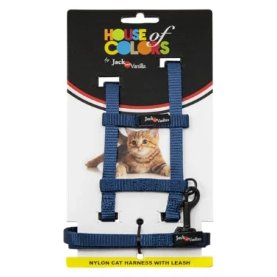 JACK AND VANILLA, Ergonomic Cat Harness with Leash, Durable Nylon, Easy Fit, Optimal Comfort, Modern Design, Blue, Size 10 mm x 120 cm, Nylon Model