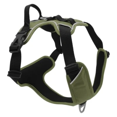 JACK AND VANILLA, Ergonomic Pet Harness, Weather Resistant, Adjustable with Reflective Strips for Safety, Olive Green, Size S, Expedition Model