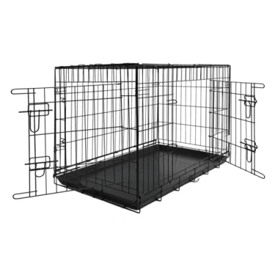 JACK and VANILLA, Foldable Pet Cage with 2 Doors, Lightweight Durable Structure, Optimal Ventilation, Easy Access, Elegant Design, 92 x 57 64 cm, Black, Travel Model