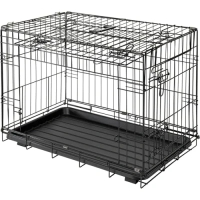JACK and VANILLA, Heavy Duty Metal Cage with Sliding Door, Optimal Ventilation Easy Cleaning, Ideal for Active Animals, Size S, Colour: Black, Travel Model