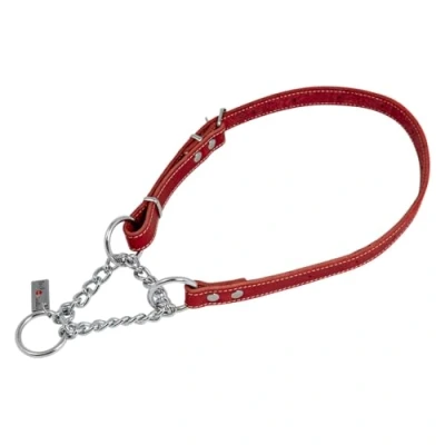 STURDY DESIGN - Martingale collar is made of high quality oily leather, providing exceptional durability and wear resistance, ideal for active and energetic dogs who require reliable equipment for their daily walks CUSTOM FIT: With an adjustable size from 35 to 50 cm, this collar allows a perfect fit around your dog's neck, ensuring optimal comfort while avoiding the risk of escape during walks ELEGANT Aesthetics: The bright red color of the necklace brings a touch of style and sophistication, making your four-legged friend a real fashion accessory when going out, while remaining visible in various lighting conditions EFFECTIVE CONTROL SYSTEM - Martingale design allows for better control of your dog, avoiding choking while providing gentle and even pressure, which is especially useful for dogs pulling on their leash Ease of care: The oily leather is not only durable but also easy to clean, which keeps the necklace in good condition with a simple wipe, ensuring prolonged use without compromising appearance or functionality