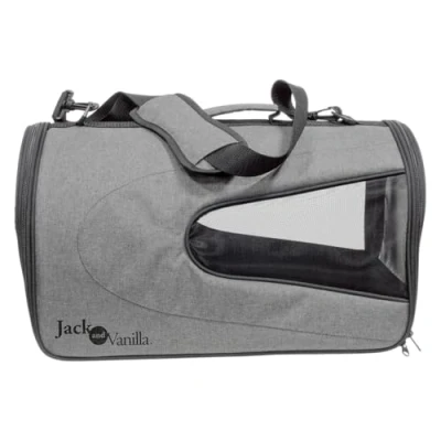 JACK and VANILLA, Pet Carrier 26 x 46 27 cm, Durable Waterproof Fabric, Optimal Ventilation, Modern Design, Grey/Black, Travel Model