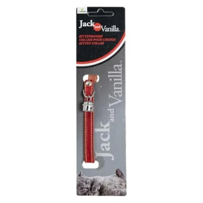 JACK AND VANILLA, Red Kitten Leather Collar Elegant Design Adjustable Integrated Security 10mm Wide 25cm Long Fat Accessory