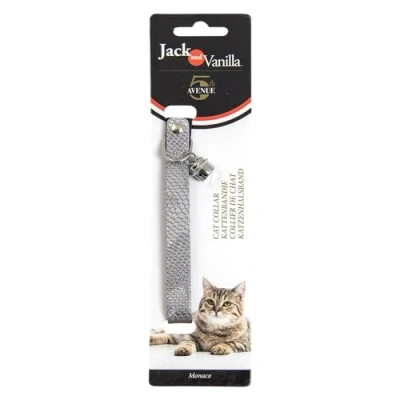 JACK and VANILLA, Silver Snake Design Cat Collar, Lightweight Durable, Adjustable for Optimal Comfort, Reinforced Security, Easy to Care, 14 mm x 30 cm, Silver, Monaco Model