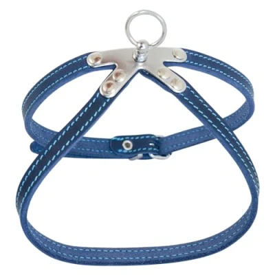 JACK AND VANILLA, Strong Leather Pet Harness, Customized Fit, Elegant Blue Colour, Ideal for Walking, Size 10 mm x 35 cm, Fat Model