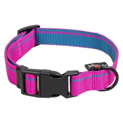JACK AND VANILLA, Stylish Dog Collar, Modern Design, Adjustable 31 47 cm, Safety Buckle, Easy to Clean, Pink, Width 20 mm, Stripe Design