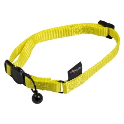JACK and VANILLA, Yellow Nylon Cat Collar, Durable Adjustable, Safety Buckle, Locating Bell, Optimal Comfort, Size 10 mm, 24 35 cm, Model