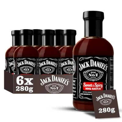 Jack Daniel's Sweet & Spicy BBQ Sauce, Gluten Free, Delicious Marinade, Barbecue Dipping No Preservatives, 6 x 280g Sauce Bottle (Small Version)