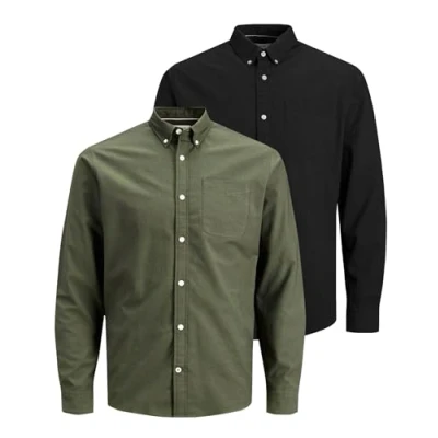 JACK & JONES Adult Men's Slim Fit Casual Shirt 100% Cotton Long Sleeve Checked Navy M, Green (Black/W. Dusty Olive), XXL