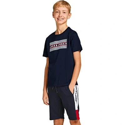 JACK & JONES Boy's Jjecorp Logo Tee Ss Crew Neck Noos Jr T Shirt, Navy Blazer/Detail:play2, 128