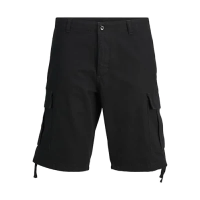 JACK & JONES Cargo Shorts, 100% Cotton Combat Knee Length Half Pants for Summer Outdoor Shorts Men UK, Black Colour, Size XXL