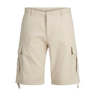 JACK & JONES Cargo Shorts, 100% Cotton Combat Knee Length Half Pants for Summer Outdoor Shorts Men UK, Moon Beam Colour, Size XL Off White